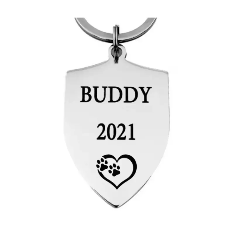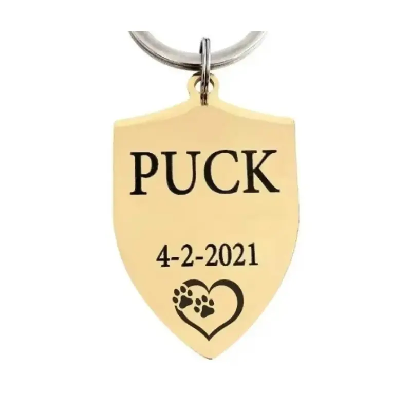 De beste manier om je hond te beschermen, laat deze luxe hondenpenning met naam in de vorm van een Shield te laten graveren. Met de ring, die er gratis wordt bijgeleverd, kan je deze penning eenvoudig aan de halsband van je hond bevestigen. Wij hebben een leuke collectie van Titanium gegraveerde penning voor je hond die je kan graveren met allerlei belangrijke informatie, bijvoorbeeld je naam adres en telefoonnummer.