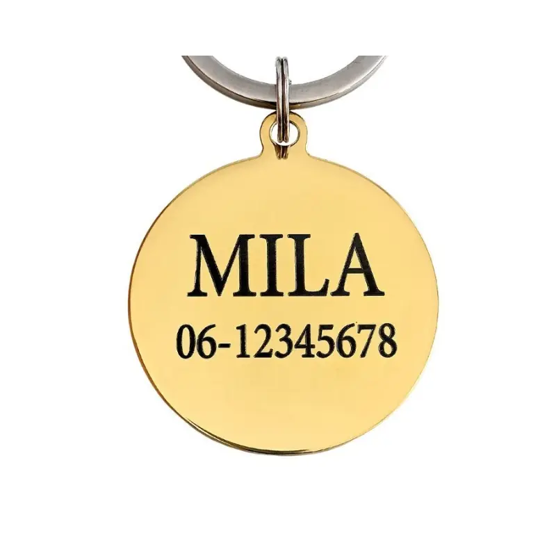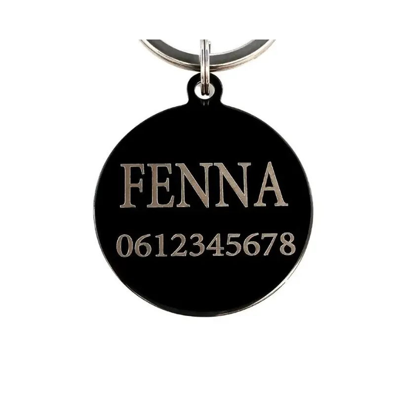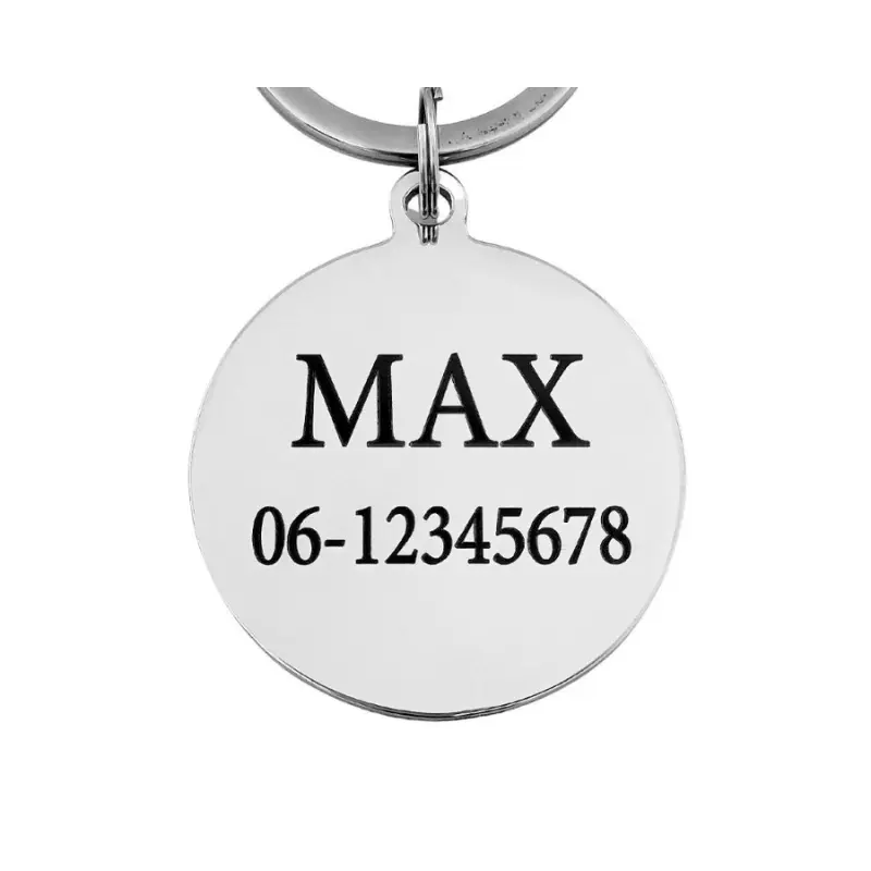 Penning hond graveren met naam en telefoonnummer